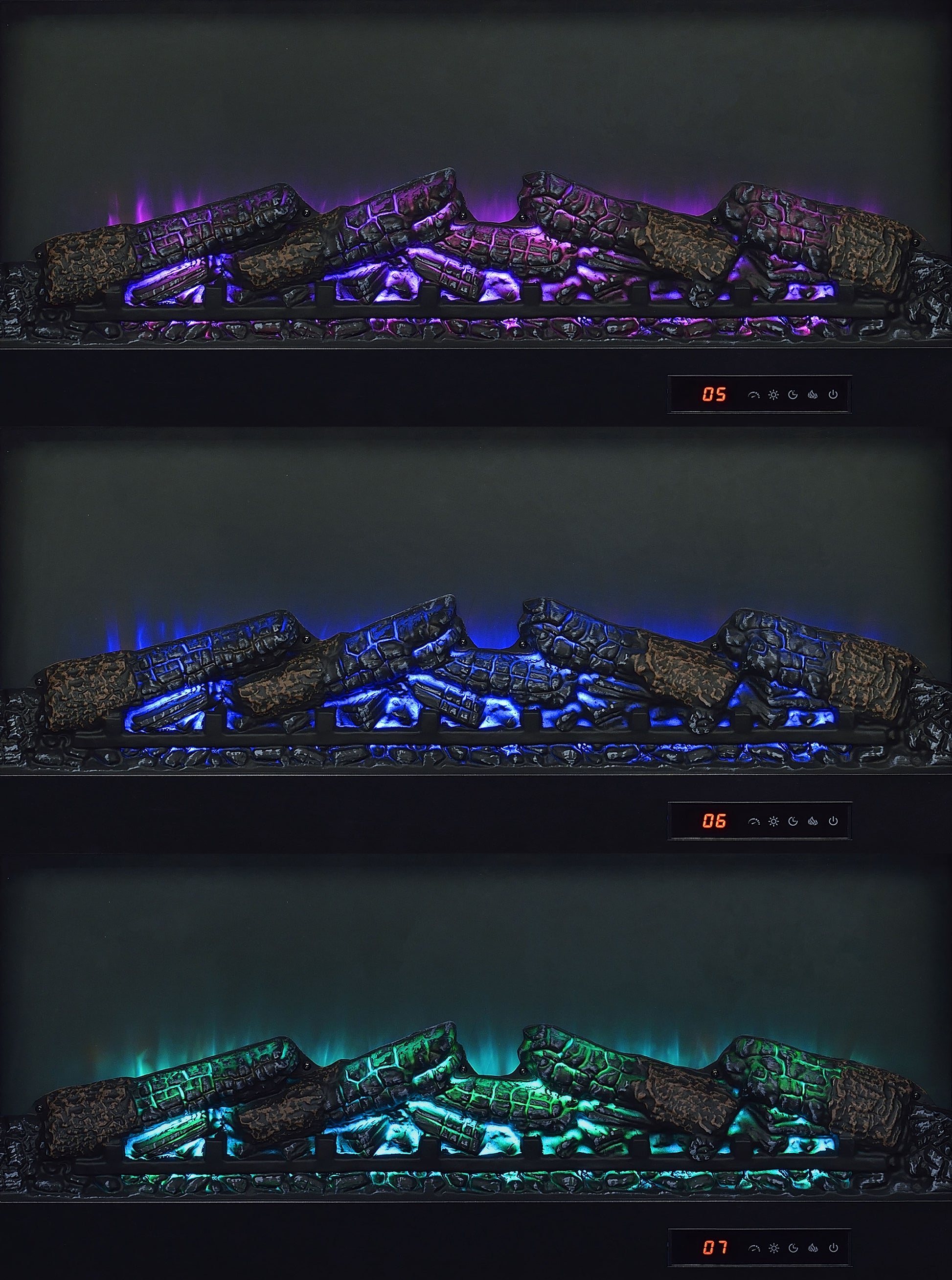 • Realistic burning ember display without heat functionality delivers visual warmth and ambiance