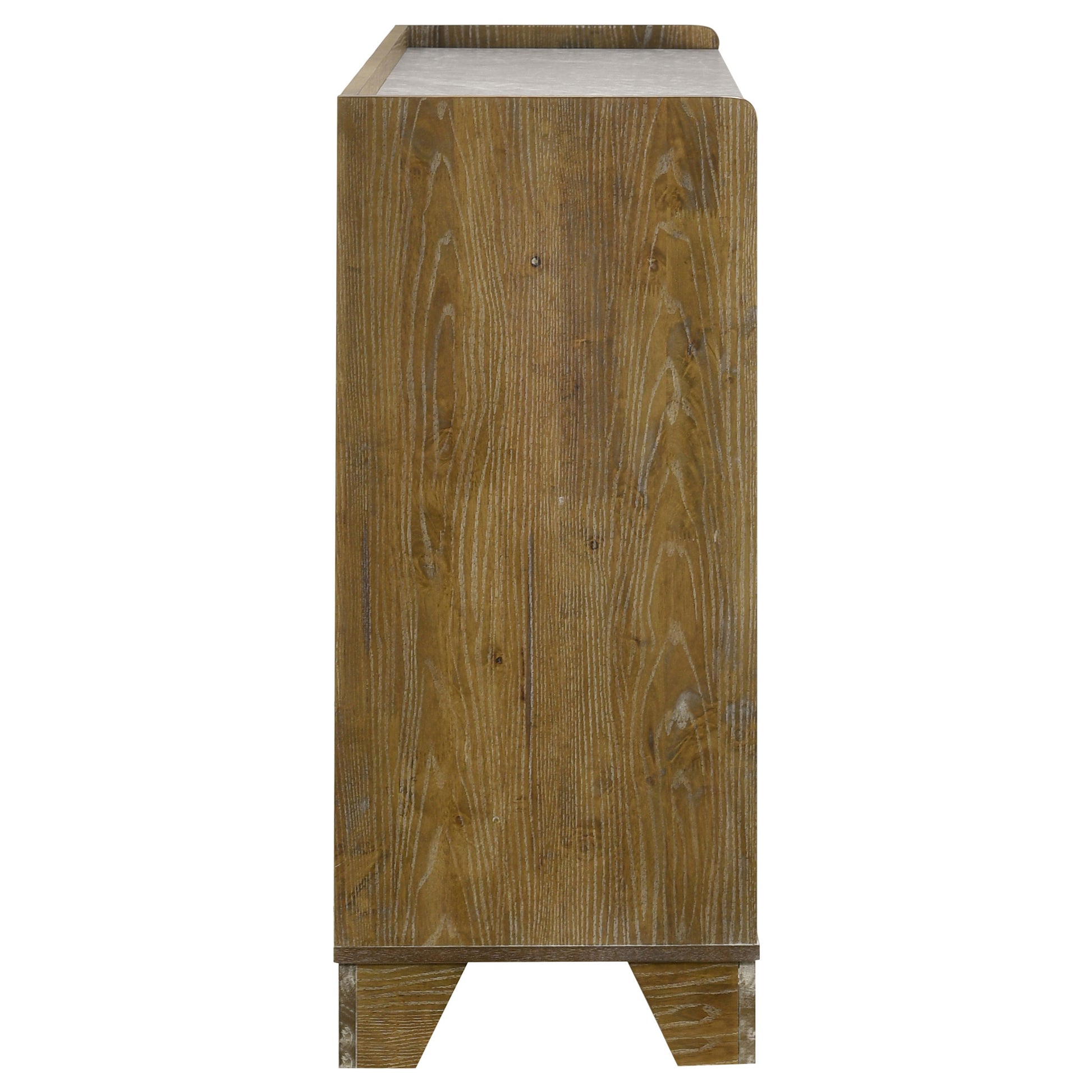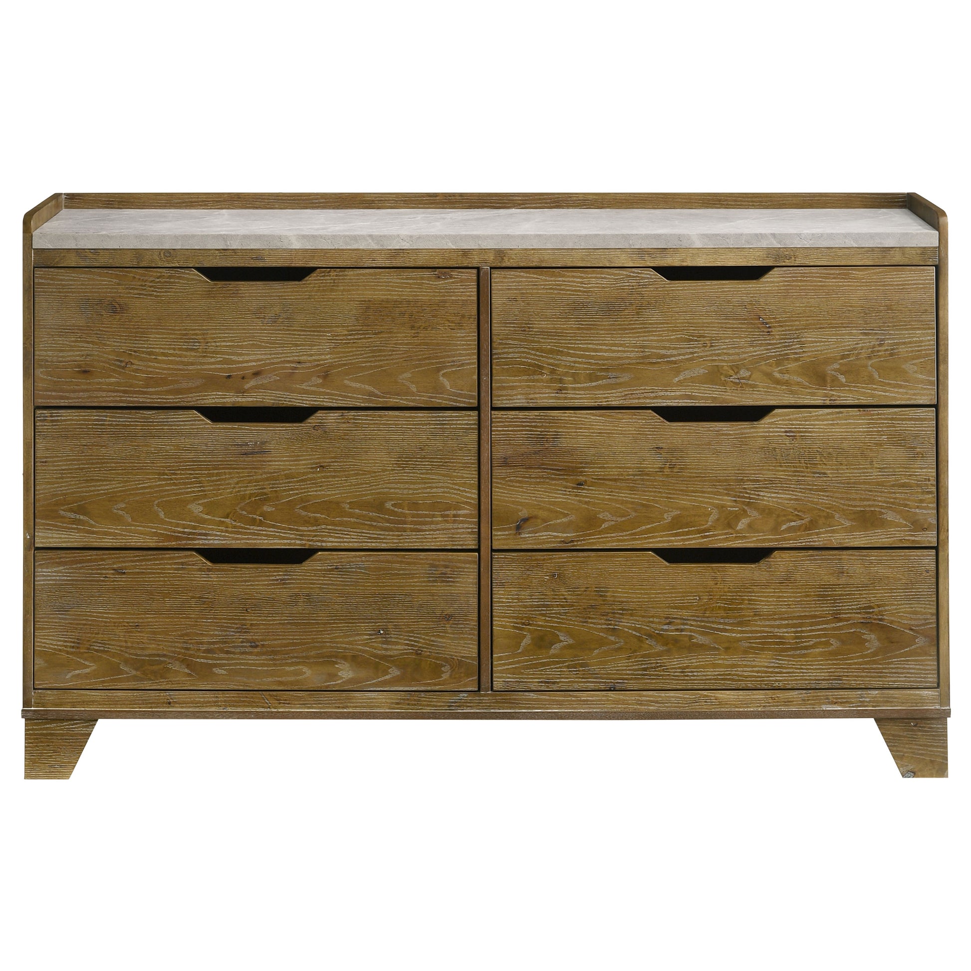• Six-drawer dresser offers a refined mix of rustic wood texture and modern function