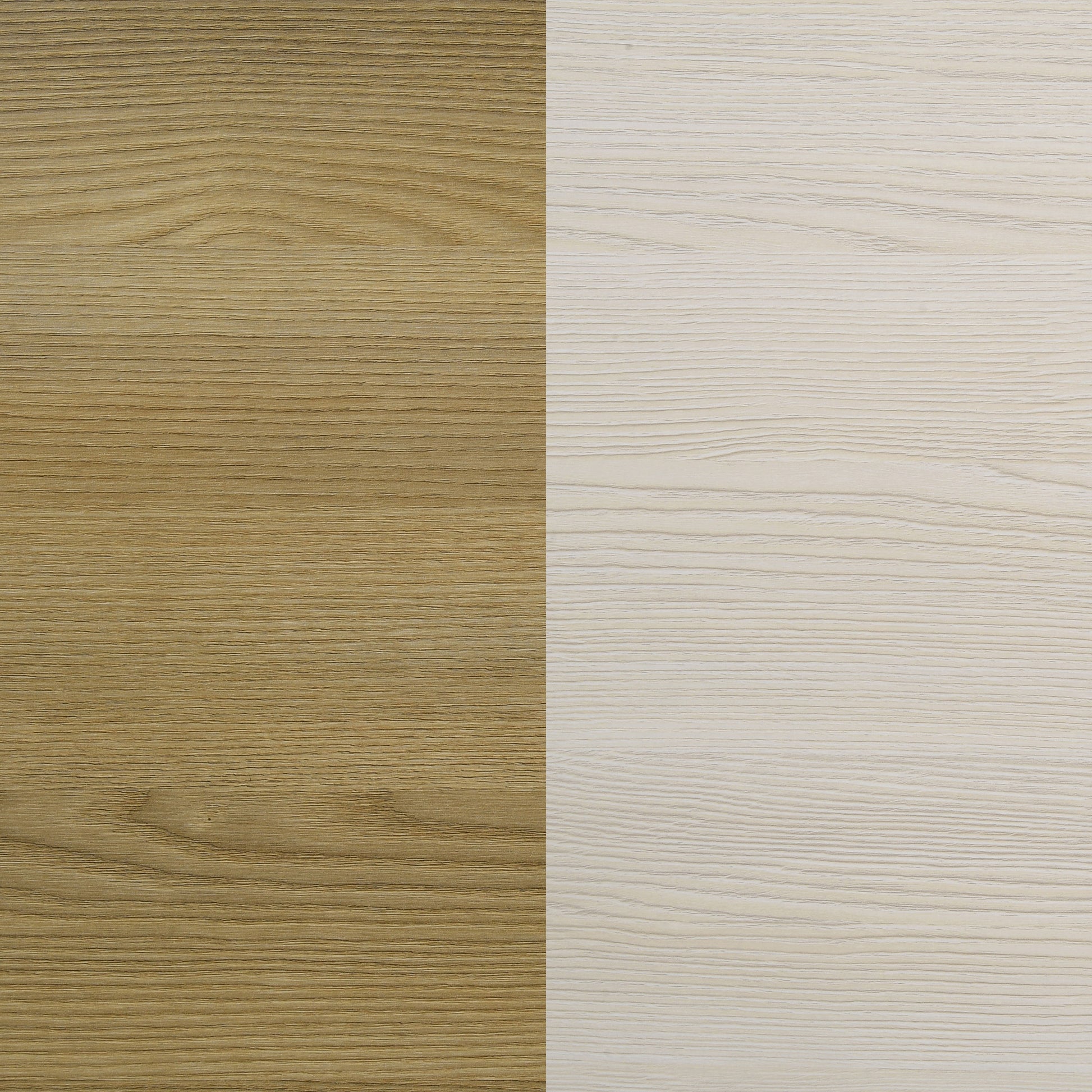 • Durable, easy-care melamine in a sophisticated blend of natural wood tones and white panels