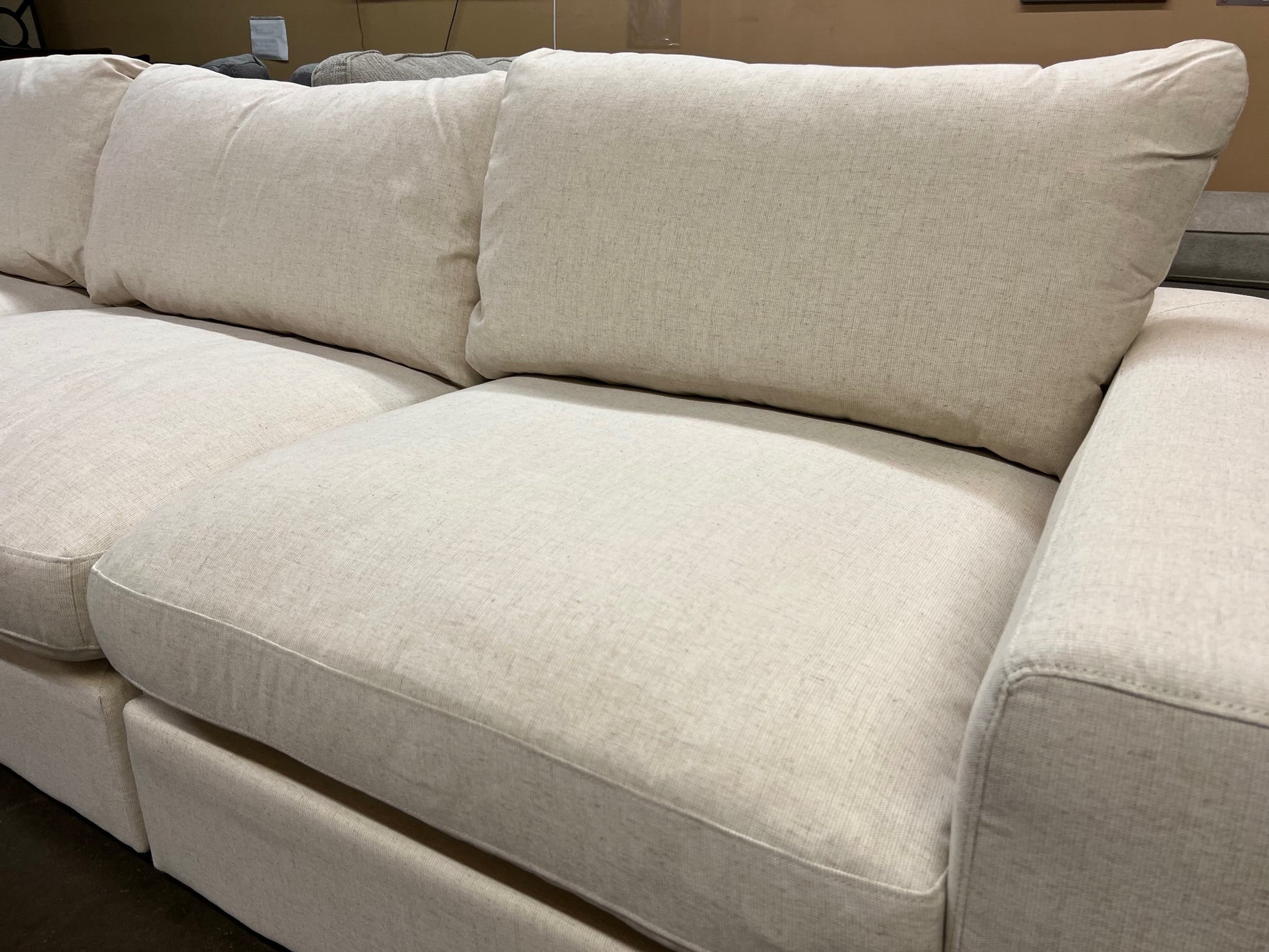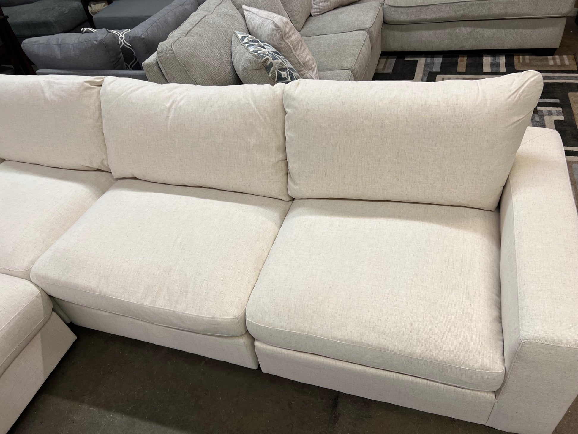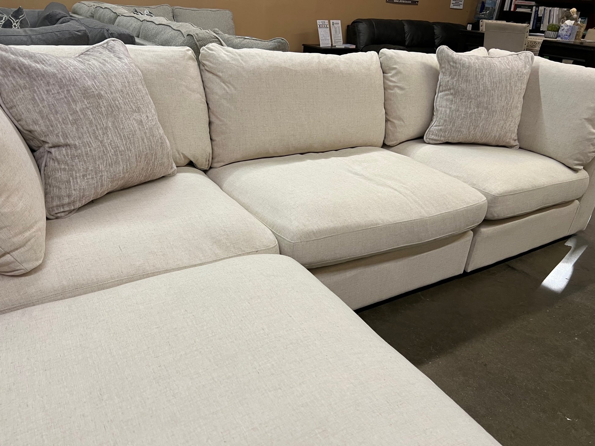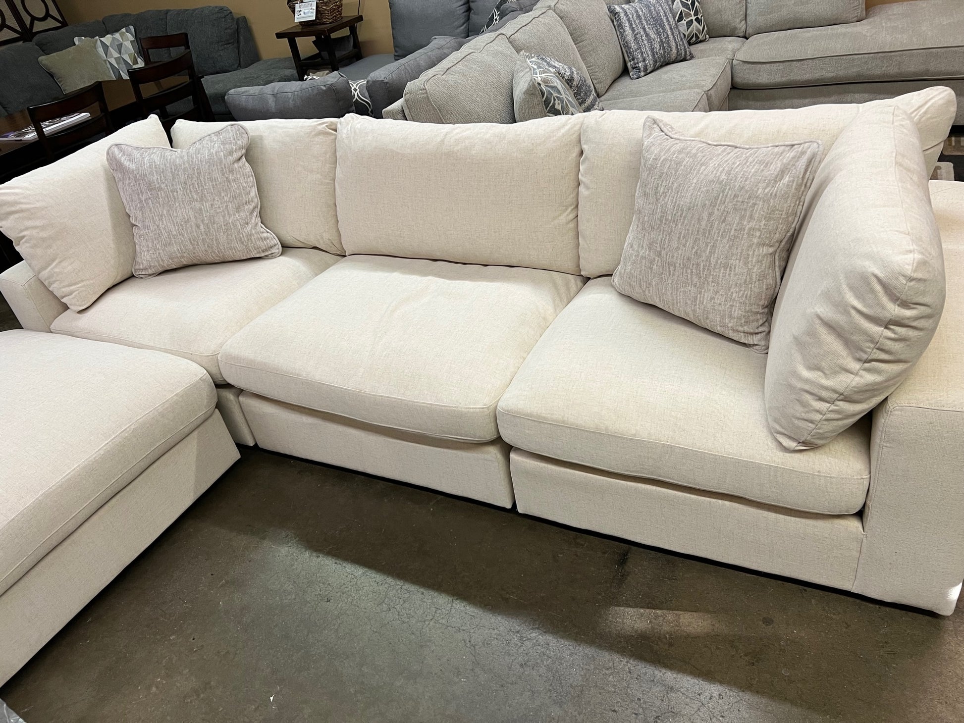 Create a welcoming seating area with this four-piece contemporary sectional. Designed with one armless chair, two corner chairs and one oversized ottoman, this modular sofa lends itself wonderfully to casual, chic entertainment spaces and family living rooms. Wrapped in a breathable linen-like fabric that is soft to the touch, this stylish sectional also features a neutral hue than offers a serene look to a restful retreat. jacquard accent pillows offer extra texture and dimension against the reversible back pillows. Slide the ottoman against a seat to transform the side into a chaise lounge to stretch out or rotate it in front to act as a coffee table for a drink tray.