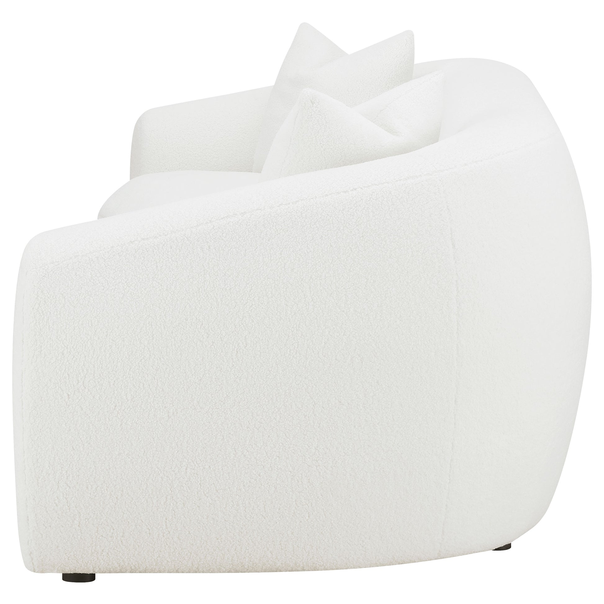 • Curved sofa upholstered in natural faux sheepskin boucle fabric
