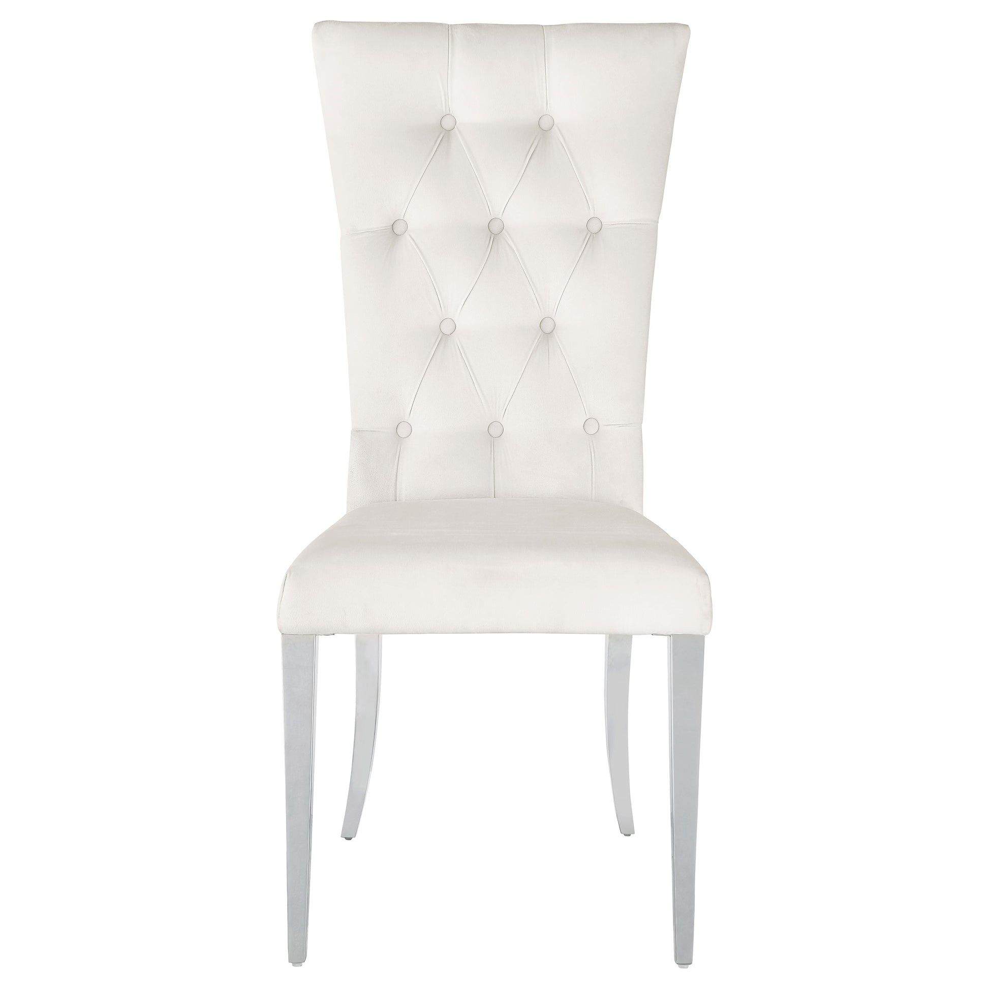 • Parson-inspired dining chairs with a button-tufted flared backs offer an updated contemporary expression