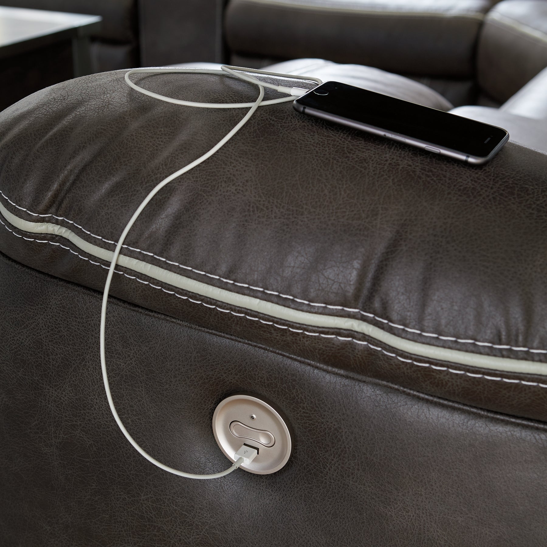 | Details | Includes 3 pieces: left-arm facing power reclining sofa with console, right-arm facing power reclining sofa with console and wedge, "Left-arm" and "right-arm" describe the position of the arm when you face the piece, One-touch power control with adjustable positions, Corner-blocked frame with metal reinforced seat, Attached cushions, High-quality foam cushions wrapped in poly fiber, Includes USB charging port in the power control, 2 lift-top storage consoles; each with 2 cup holders with blue LED lighting, Faux leather upholstery, Power cord included; UL Listed | |