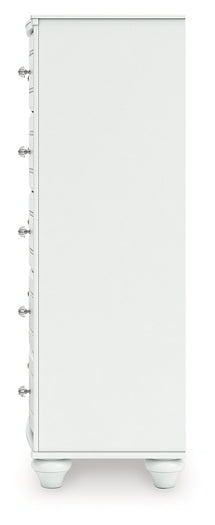 | Details | Made with engineered wood (MDF/particleboard/plywood) and decorative laminate for the right balance of affordability and durability, Matte white finish, Decorative laminate replicates natural or man-made material surfaces with consistent color, pattern and texture, Crystal drawer knobs, 5 smooth-gliding drawers, Drawer interiors are lined with a faux linen laminate for a clean, finished look, Safety is a top priority, clothing storage units are designed to meet the most current standards for stability, ATM F 2057 (ASTM International), Drawers extend out to accommodate maximum access to drawer interior while maintaining safety, Minor assembly required | |