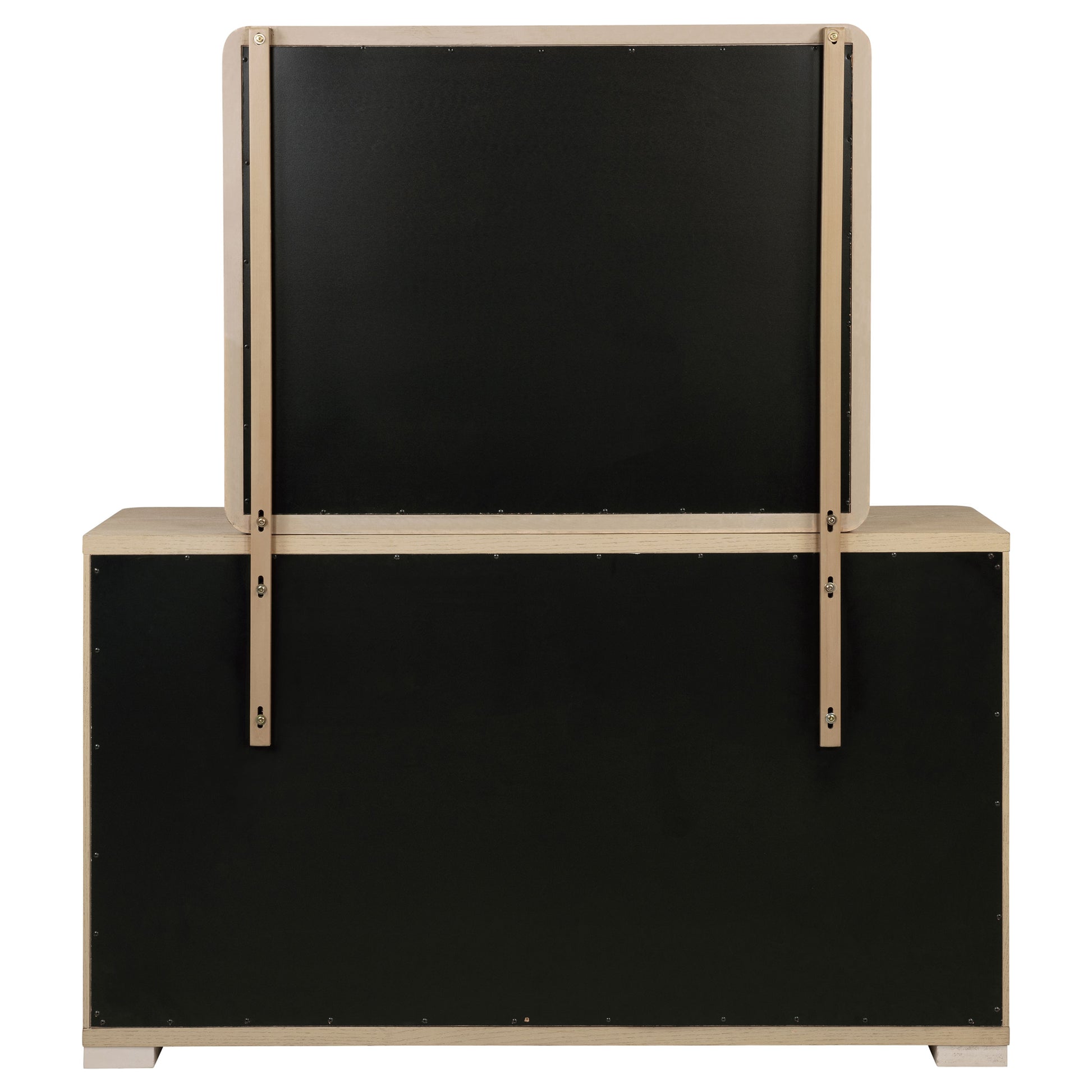 • Light elm finish creates a modern, elegant aesthetic for the dresser and mirror set