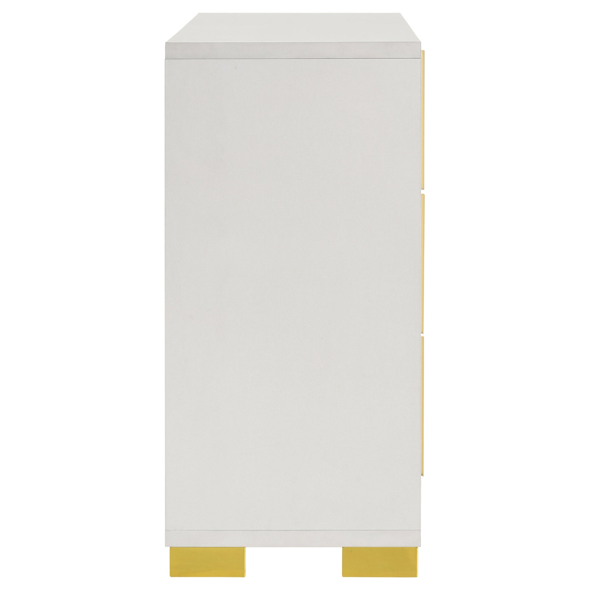 • Made of wood products with versatile finish and glam accenting from gold finish metal