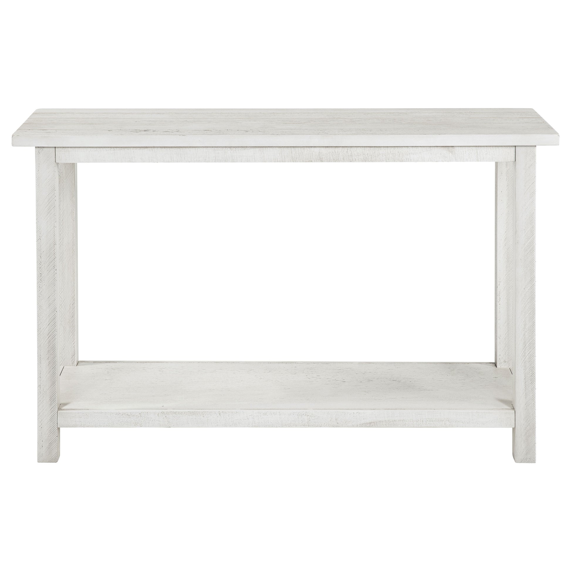 • Distressed white finish creates a warm, casually elegant focal point