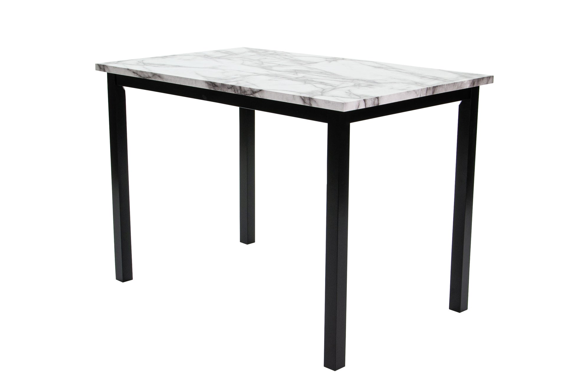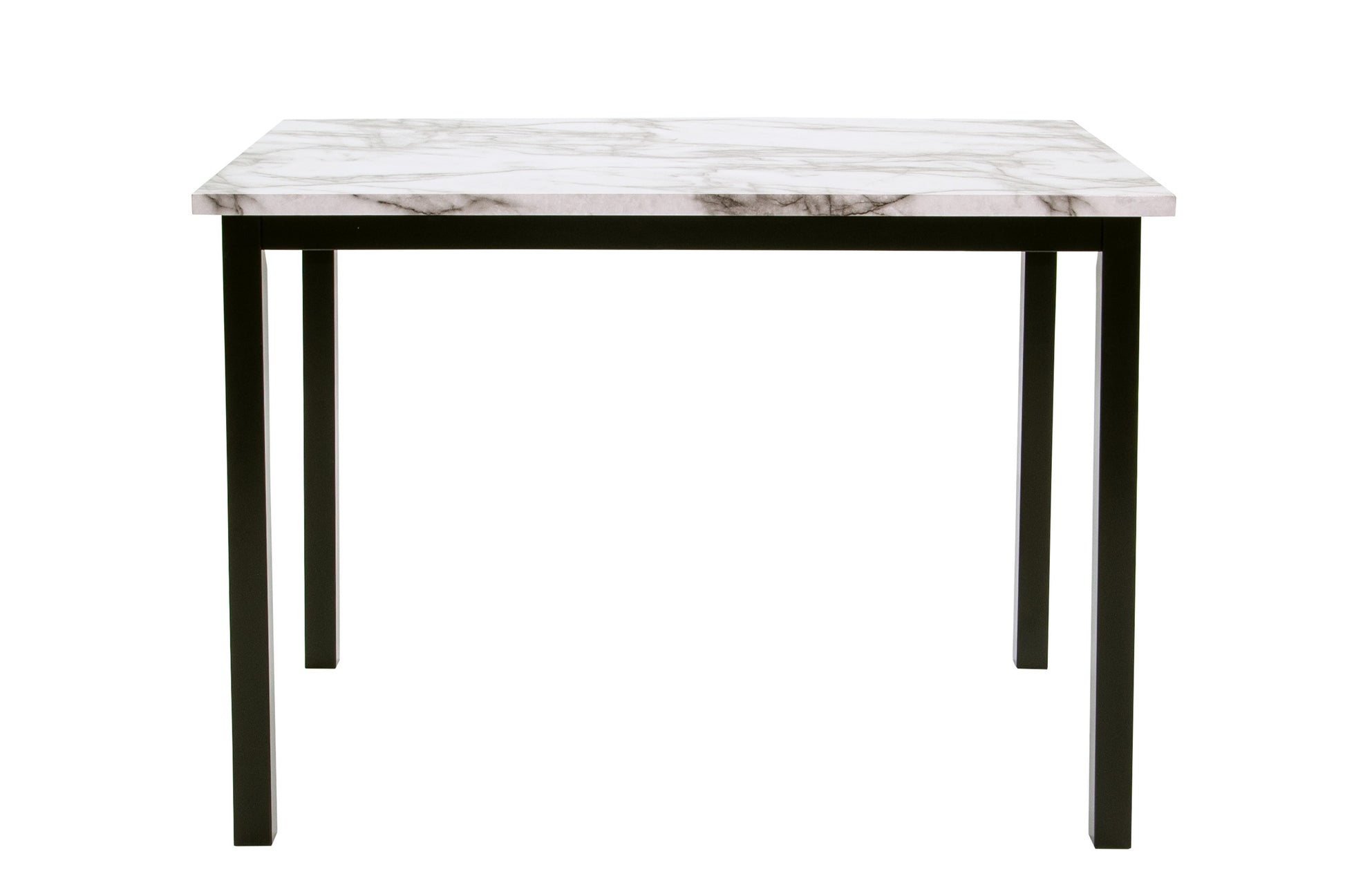 - Featuring a striking dual-toned design, the faux marble tabletop offers a refined and sophisticated look that enhances every meal with a touch of luxury